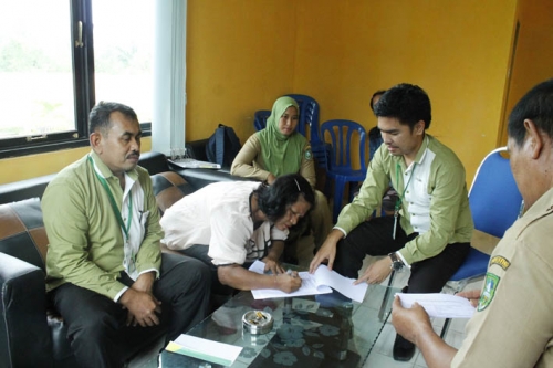 Ahli waris menandatangani santunan dari BPJS Ketenagakerjaan.